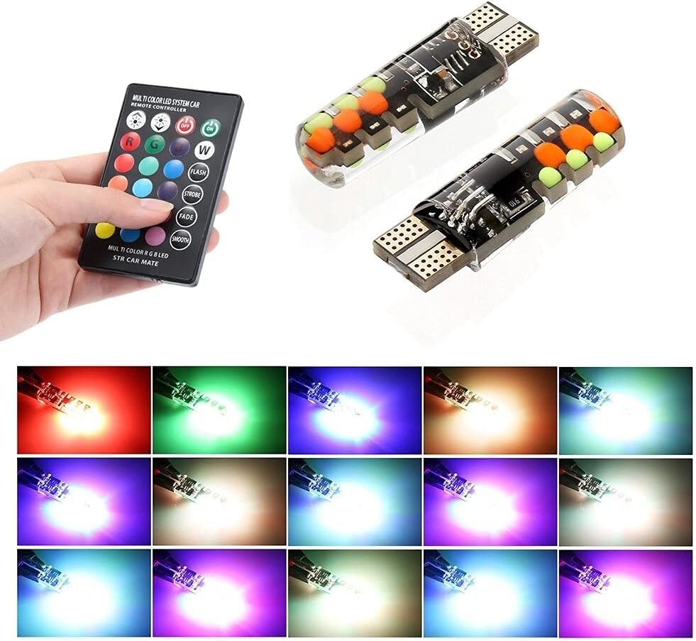 Generic - لمبات اضاءة LED كهربائية T10 ملونة RGB مع ريموت كنترول - متعدد الالوان - قطعتين - مناسبة للنور الواطى والصالون والشنطة ولوحة التراخيص وغيرها - (ليد الوان) - من كابر تريد