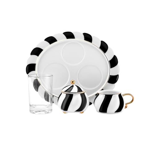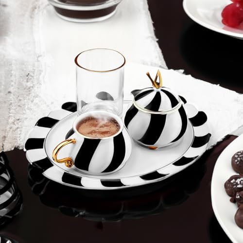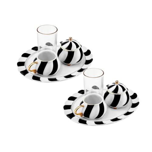 - Karaca New Generation Bone Espresso Turkish Coffee Cup Set for 2 People, 8 Piece, 90ml, White Black Gold