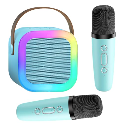 Oskuglin - Karaoke Machine for Kids with 2 Microphones for Mobile Phone/USB/TF Card, Portable Mini Karaoke Machine with LED Light and Voice Changing Effects for Home Party, Birthday (Blue)