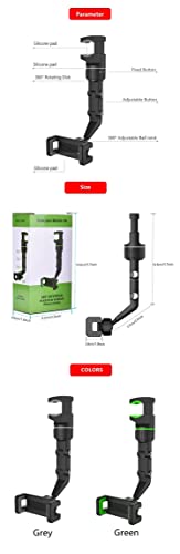 - 1. حامل موبايل بمرآه خلفية للسيارة، مشبك عريض واسع النطاق، سهل القفل