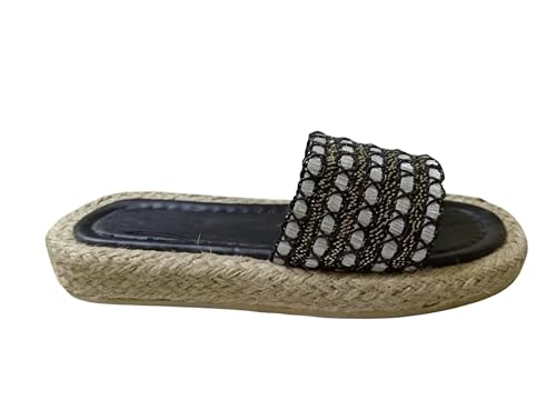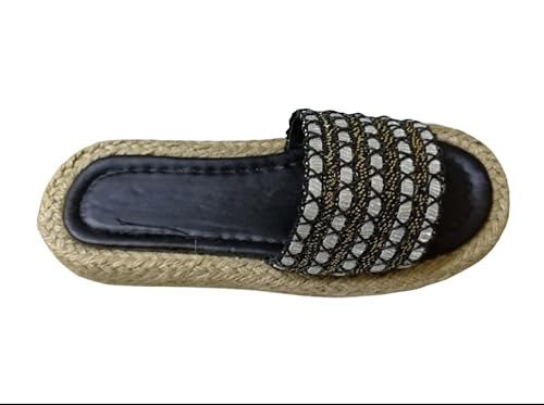 Karisma - Karisma womens 2cm canvas wedged slipper with a handmade embroidered upper Wedge Sandal