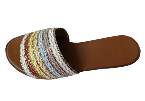 Karisma - شبشب مسطح للنساء مخطط بحزام مطرز ملون