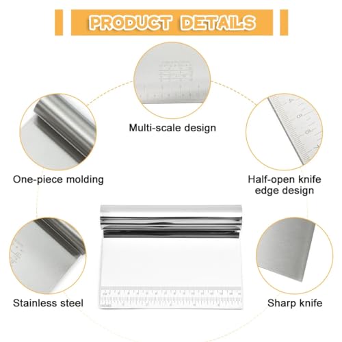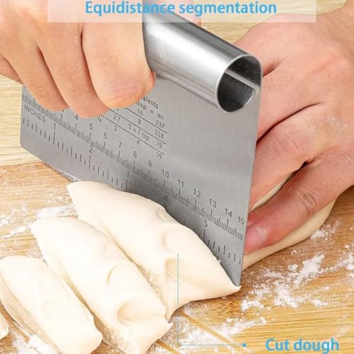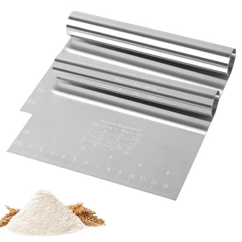 Karkar - ملعقة سباتولا للعجين من قطعتين من الستانلس ستيل، مكشطة عجين من الستانلس ستيل مع مقياس قياس للخبز وعجينة البيتزا والكيك والكوكيز