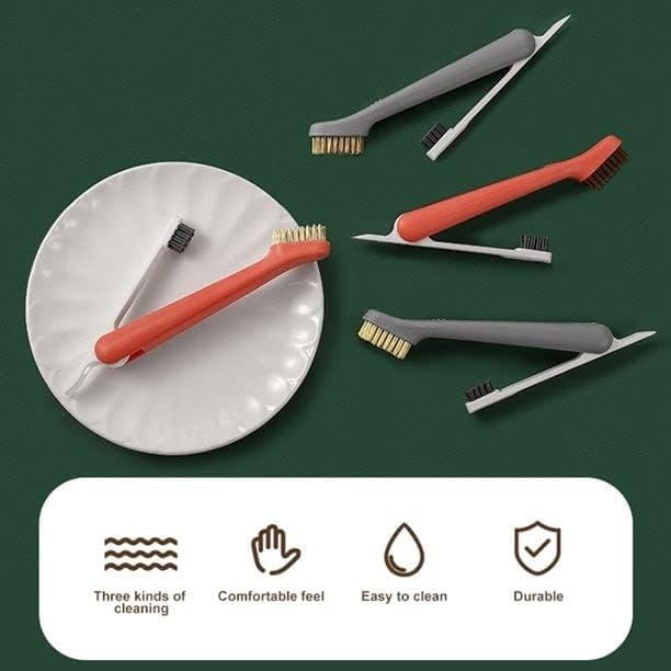 karomouj - Karomouj K744 Foldable Mini Wire Hard Bristle & Nylon Brass Cleaning Brush 2-in-1 Multipurpose Brush with Scraper Ideal for Household Kitchen, Gas Stove & Window Dirt (Multicolor Pack of 1)