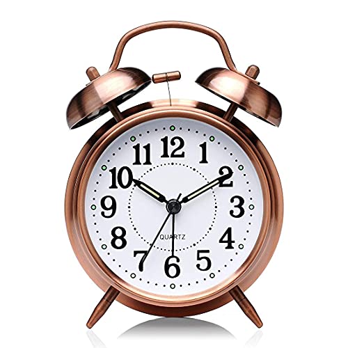 KARTVILLA - Twin Bell Copper Table Alarm Clock with Night LED Light for Student for Kids Bedroom