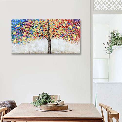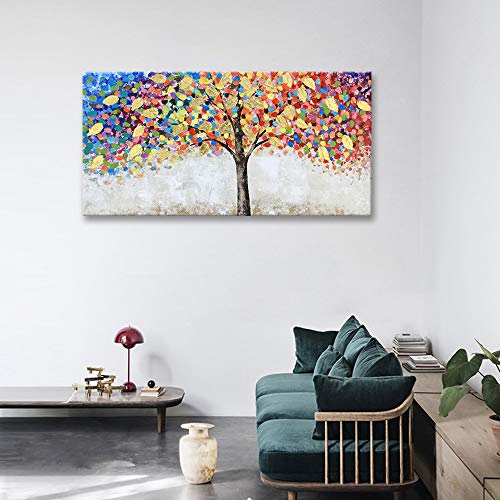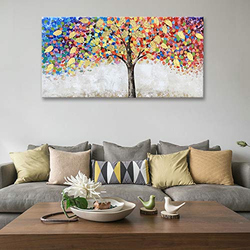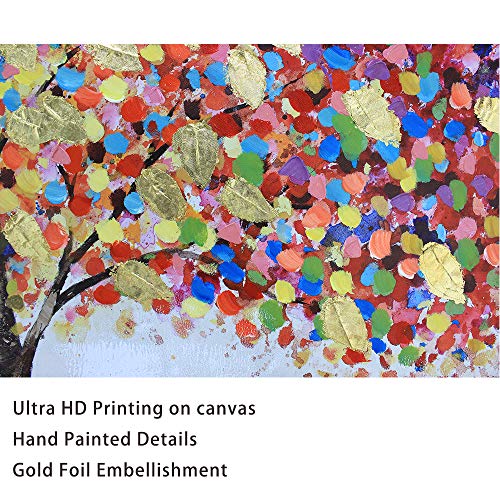 - 【 ORIGINAL 】 – The Blooming Gold Leaf and Colorful Flower Tree Canvas Painting for Living Room Wall Decor is originally designed by our creative artist Vivian. She always sketches her ideas on paper and paint with acrylic on canvas. Then she adds beautiful gold foil by hand to give the painting shining 3D looks. This art piece gains elegant shining accent in light, is very suitable for collection.