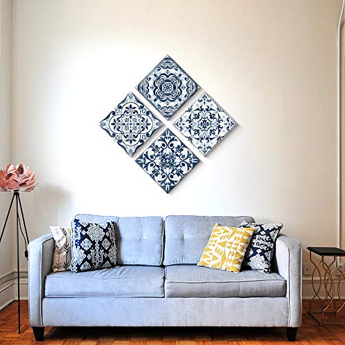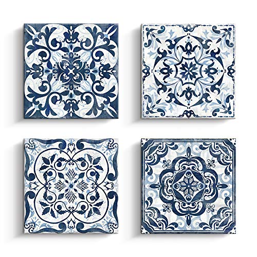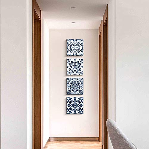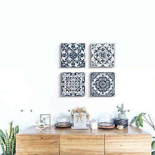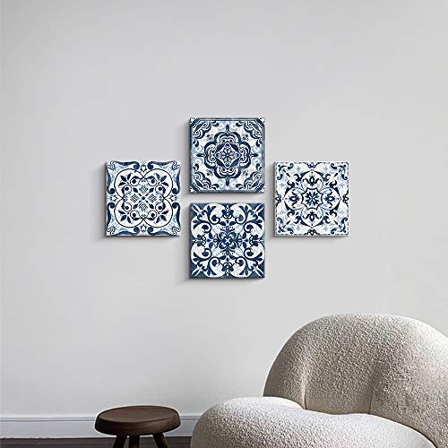 - Kas Home Boho Flower Room Decor Canvas Modern Abstract Paintings Wall Art Navy Floral Pictures Prints 4 Panels Artwork for Bedroom Bathroom Living Office Decorations (14 x 14 4, Blue)