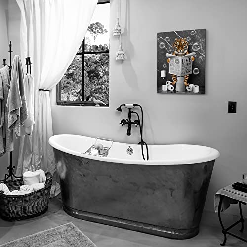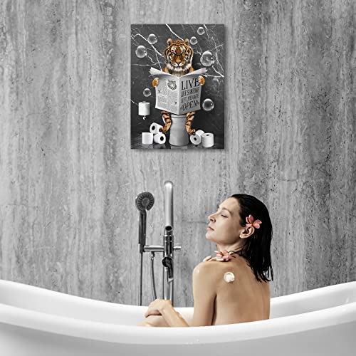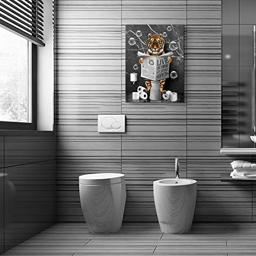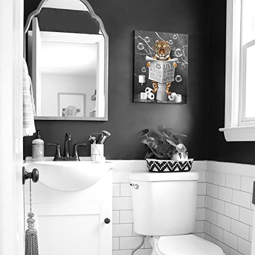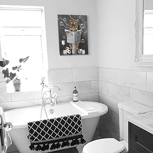 Kasluolo - Kasluolo Tiger Bathroom Decor Wall Art Funny Tiger in Toilet Bathroom Poster Black and White Tiger Picture Print Painting Wall Décor for Bathroom Toilet Framed Artwork 12x16 inch