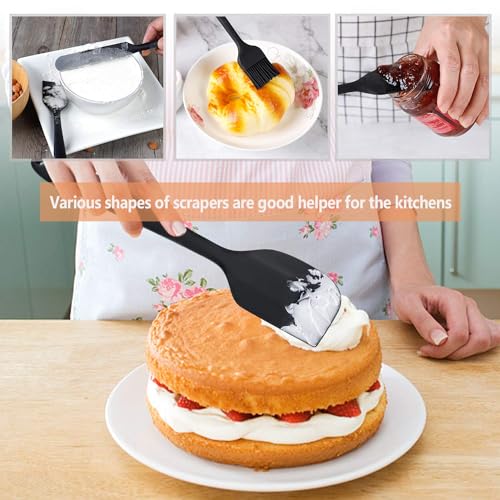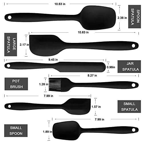KASTWAVE - طقم ملاعق سباتولا من السيليكون للطهي والكريمات، ملعقة سباتولا مدمجة للكيك والكريمة، أداة خبز متعددة الوظائف، ملعقة سباتولا مقاومة للحرارة العالية للخبز والطبخ والخلط من كاستويف، أسود، 6 قطع