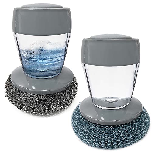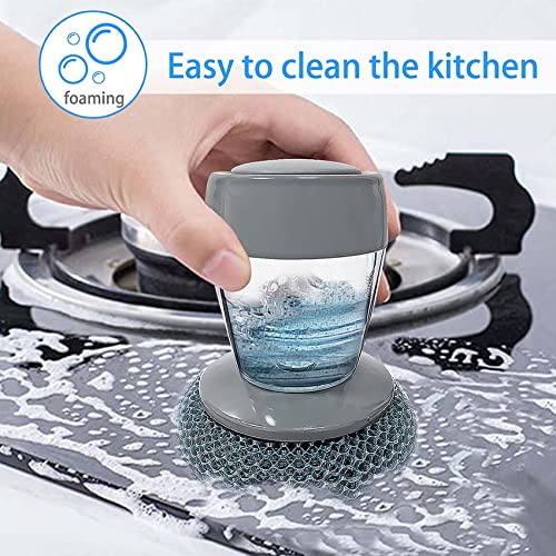 - 😃NICE DESIGN: New-design PET Soap Dispensing Palm Brush will not hurt your hands, dishes and pots, smellproof, safe and durable, multifunctional, and the steel brush can wash your sink and stove.