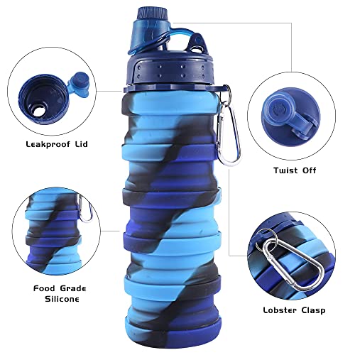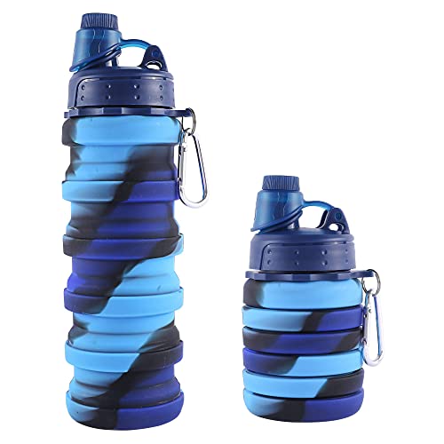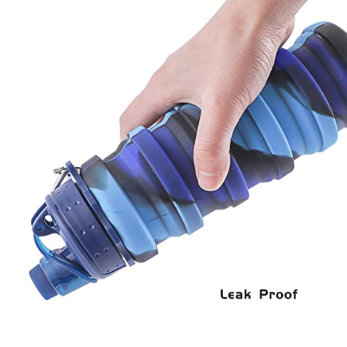 KASTWAVE - زجاجة مياه رياضية قابلة للطي واعادة الاستخدام مصنوعة من السيليكون وخالية مادة البيسفينول ا للاستخدام في الاماكن الخارجية والسفر والتخييم والتنزه للاطفال والطلاب والبنات والنساء كاستويف ازرق