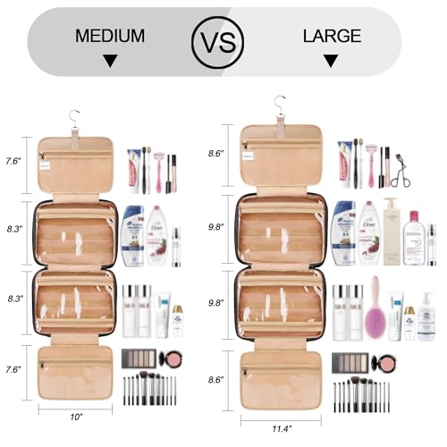 - منظم رائع - تم تصميم حقيبة الغسيل هذه مع 4 مساحات تخزين لأدوات الزينة وحجرة مجوهرات خاصة؛ يمكنك بسهولة وضع منتجات الغسيل والمجوهرات بشكل منفصل لجعل رحلتك منظمة. حجم الحالة المحملة بالكامل هو 12.5 انش طول × 10 انش ارتفاع × 4.5 انش عرض، يمكن للجيبين الرئيسيين استيعاب ما يصل إلى 8 أدوات تجميل ومستحضرات تجميل بالحجم الكامل في نفس الوقت، لا داعي للقلق بشأن السفر لمسافات طويلة.