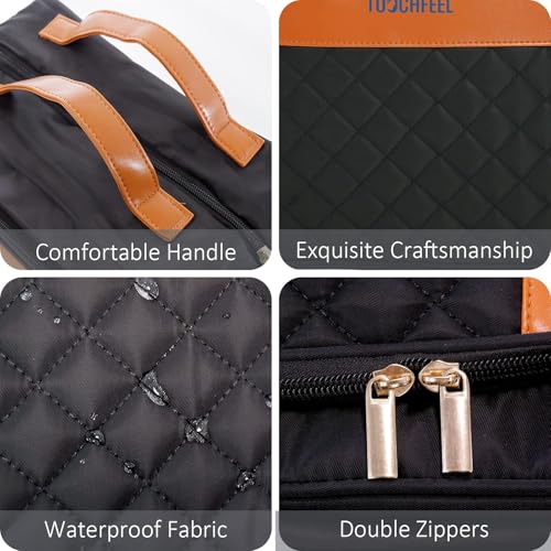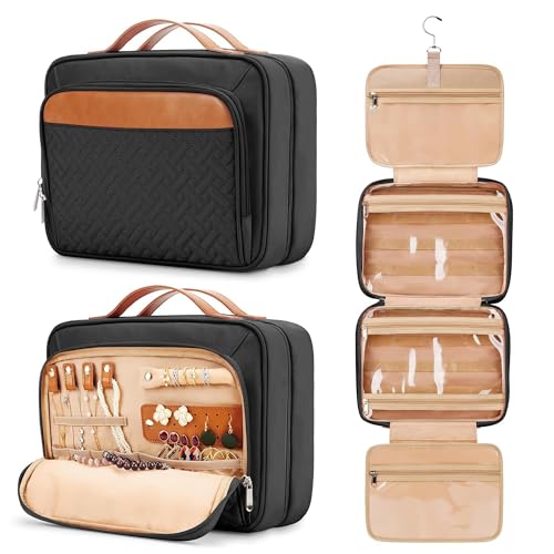 KASTWAVE - كاستويف شنطة سفر معلقة لادوات الزينة للنساء، شنطة مكياج كبيرة مقاومة للماء مع مساحة تخزين لتنظيم المجوهرات، مجموعة ادوات الزينة، اسود