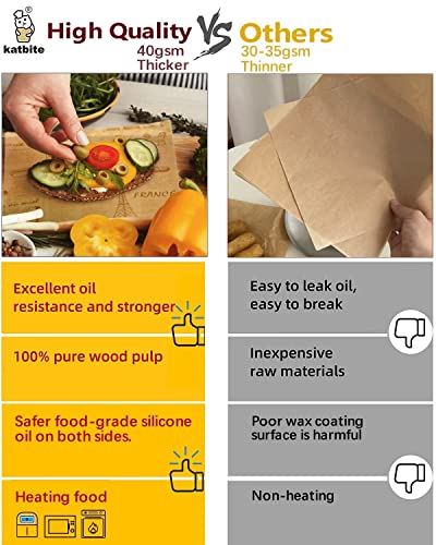 - 🍩غير سامة ومناسبة للتسخين في الميكروويف: أغلفة ورق للساندويتشات من كاتبايت مصنوعة من لب خشب طبيعي صحي بنسبة 100٪، غير مُبيضة كيميائيًا، وخالية من الفلورسنت. يمكنك تسخين الطعام البارد في الفرن أو المقلاة الهوائية أو الميكروويف (أقل من 232 درجة) لضمان النظافة والراحة. عند استخدام أوراق التغليف، يُرجى لف الطعام على الجانب غير المطبوع.