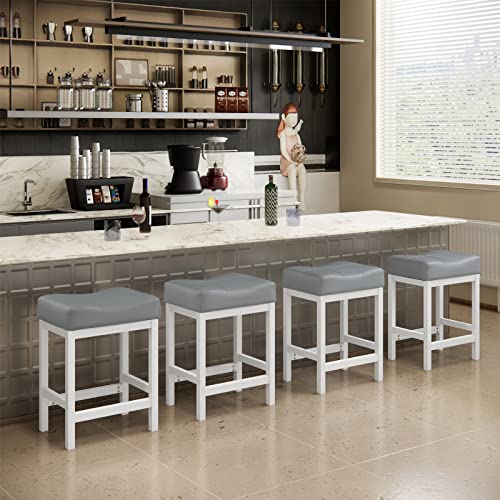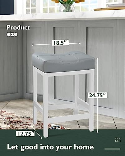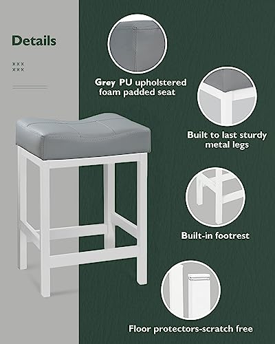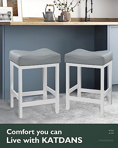 KATDANS - كرسي بار دوار فلايزك من كاتدانس، تصميم بارتفاع المنضدة بدون ظهر، كرسي بار دائري مصنوع من الجلد الصناعي المنجد باللون الرمادي لطاولة المطبخ،61 سم، رمادي، مجموعة 2 قطعة