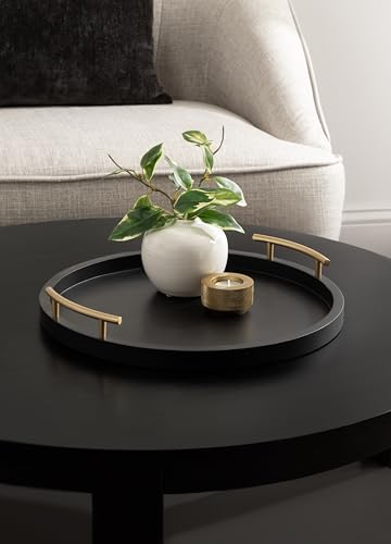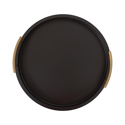 Kate and Laurel - Kate and Laurel Halsey Decorative Wooden Round Tray with Polished Metal Handles, 16 Inch Diameter, Black and Gold, Modern Glam Wood Circle Serving Tray for Use as Ottoman or Coffee Table Decor