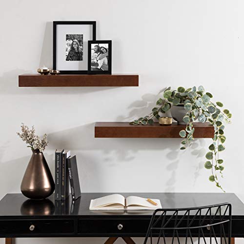 Kate and Laurel - كيت اند لوريل ارفف عائمة عصرية من هافلوك، مجموعة من قطعتين، لون بني جوزي، ارفف تخزين وعرض للحائط من منتصف القرن