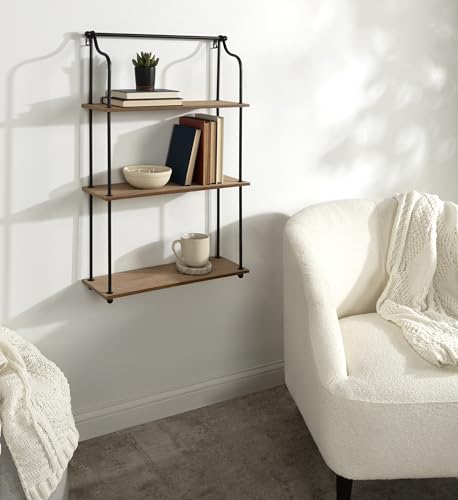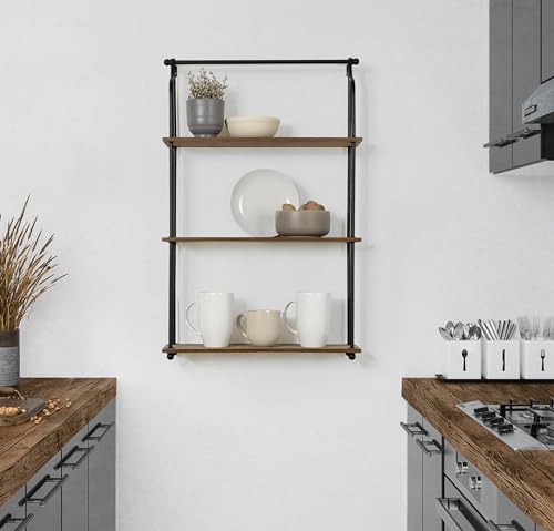 Kate and Laurel - Kate and Laurel Walters Wood and Metal 3-Tier Shelving, 21" x 32", Rustic Brown and Black, Shabby-Chic Industrial Shelves for Storage and Decor