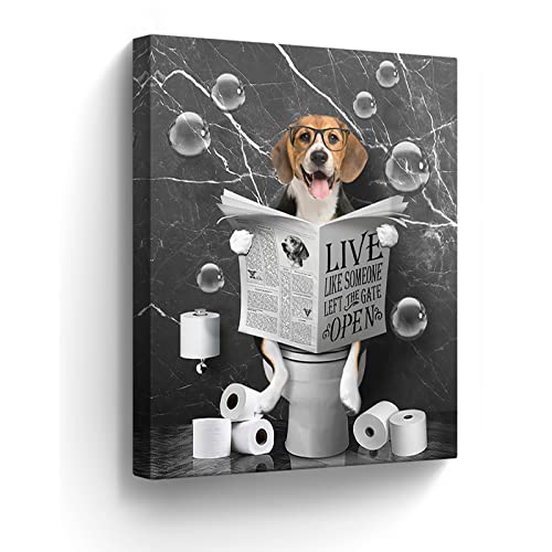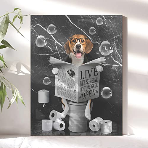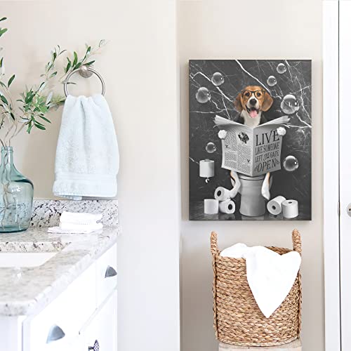 Kateflower - Kateflower Beagle Dog Sitting in Toilet Bathroom Decor Wall Art Funny Beagle Pictures Black and White Bathroom Wall Decor Farmhouse Dogs Painting for Toilet Bathroom Animals Artwork Framed 12"x16"