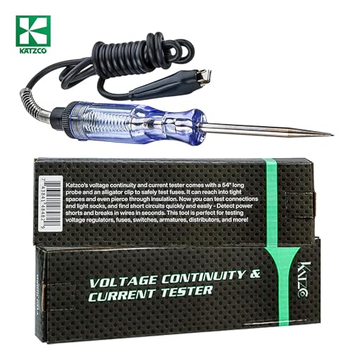 Katzco - Katzco Voltage Continuity and Current Tester - 6-12 V DC - 24 V AC Circuit - Heavy Duty - Long Probe Tester With Indicator Light - 54 Inch Cord for Low Voltage Systems, Cars, Live Wires, Fuses