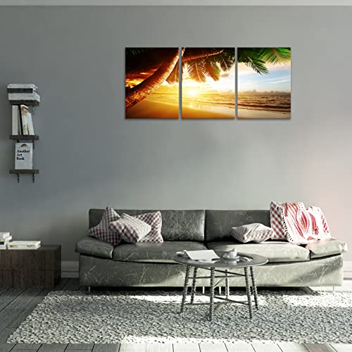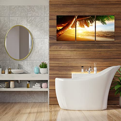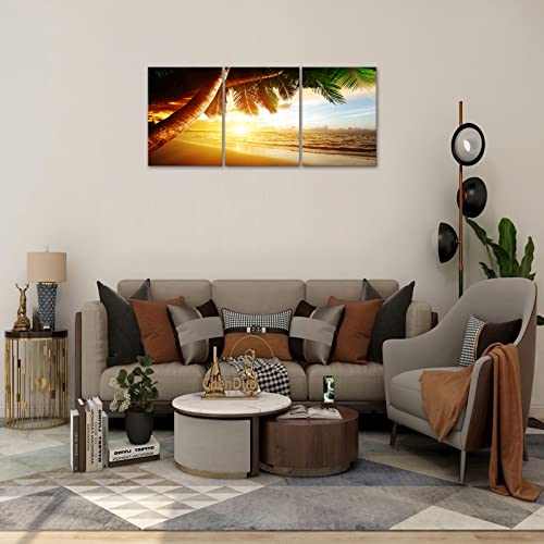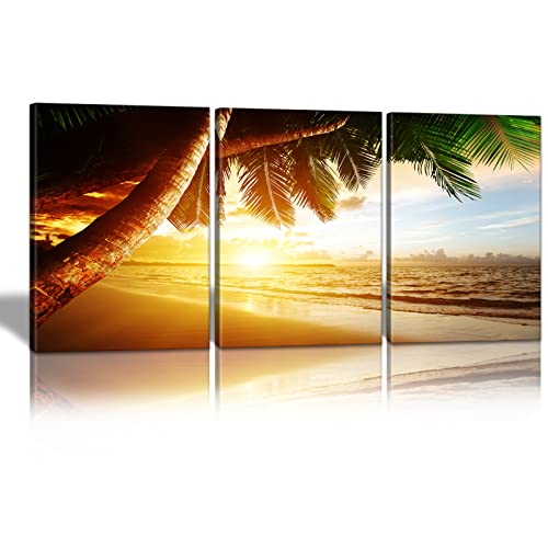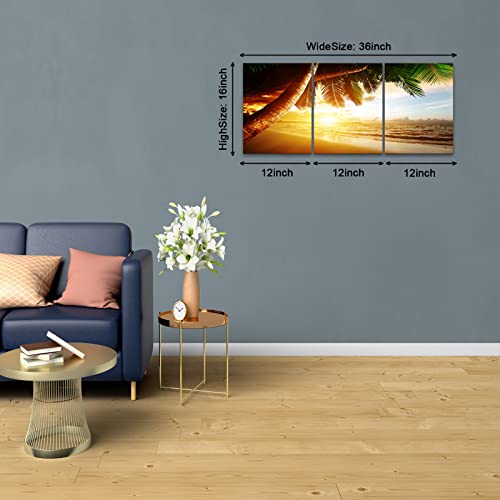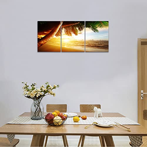 KAWAHONE - KAWAHONE Sunrise Ocean Canvas Wall Art, Coconut Tree Beach Landscape Poster Framed, Canvas Painting Printing Picture for Home Living Room,12" x 16" x 3 PCS