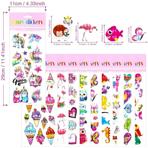 Generic - Kawaii Animals - Adorable laser stickers with unicorns, mermaids, and flowers designed for kids to use in sticker books or creative scrapbooking activities now. (Model 7)
