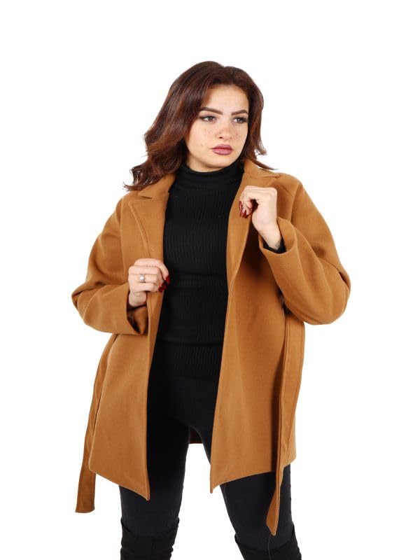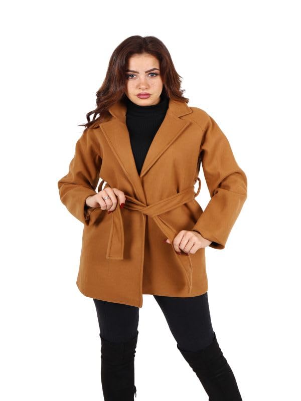 Generic - Kayan Women's Beautiful Belt Coat, Camel, Classic Collar