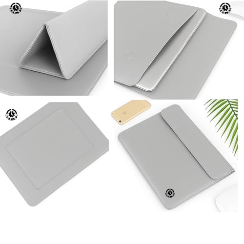 KCA_S3 - multi function 3IN1 Magnetic PU Leather Waterproof Laptop Sleeve Case 11-13.3 MacBook Air Pro Tablet HP Microsoft Envy Huawei-Lenovo Surface Portable Protector Bag Stand (Silver, 14-15.4 Inch)