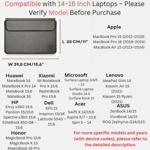 - Superior Protection: Crafted with high-quality, waterproof PU leather and lined with soft, protective foam, the sleeve shields your laptop from dust, scratches, drops, and shocks. Its splashproof exterior remains easy to clean, ensuring the case retains its pristine appearance.
