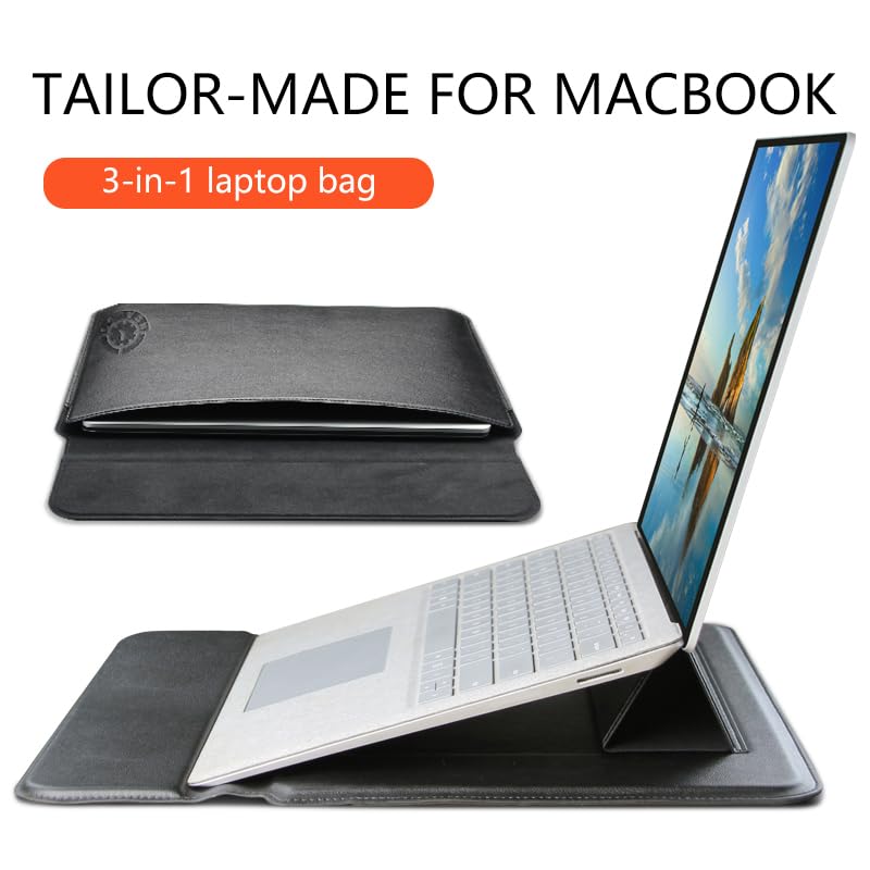- Invisible Stand Functionality: Equipped with a strong magnetic closure, this sleeve effortlessly transforms into a laptop stand. The invisible stand offers adjustable angles for optimal viewing, typing comfort, and improved device ventilation, promoting prolonged device longevity.