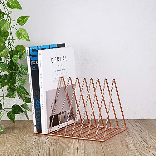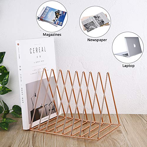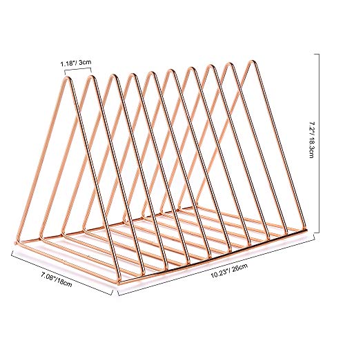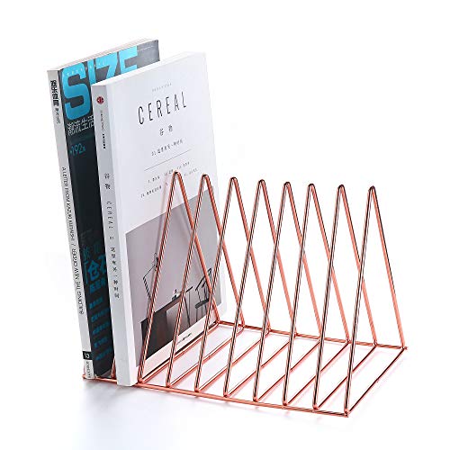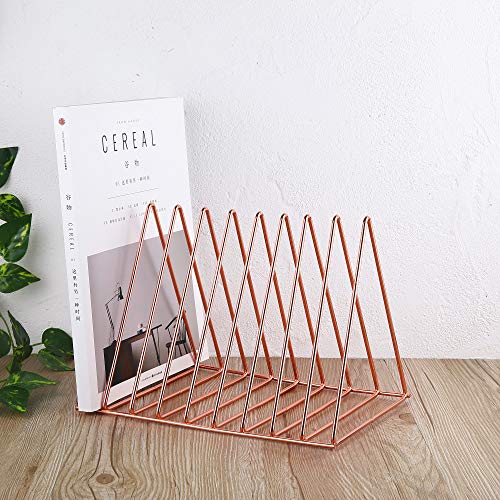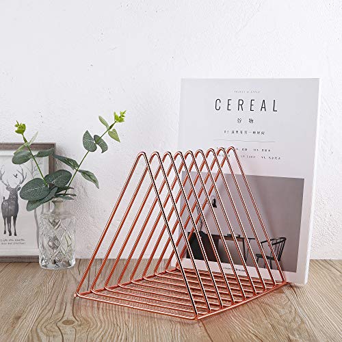 Keador - File Holder Stand, Magazine Rack Book Record Holder, File Organizer Magazine Rack, Metal Desktop Book Shelf Book Stand, Triangle Iron Book Rack for Office Home Decor (Standard, Rose Gold)