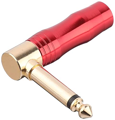 Keendex - وصلة مقبس ستيريو صوت AUX ذكر TS 1/4 بامالة 90 درجة مطلية بالذهب من كيندكس KX 1981 - احمر، 6.35 ملم، لآلة موسيقية