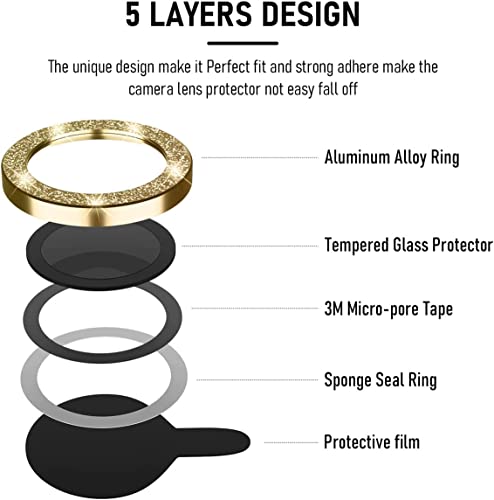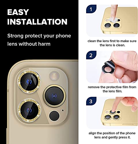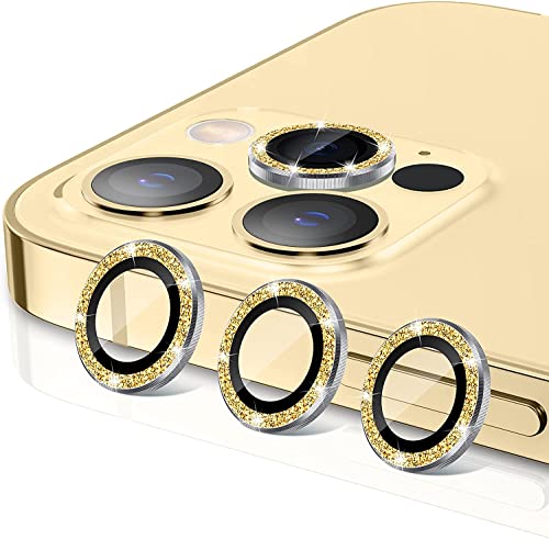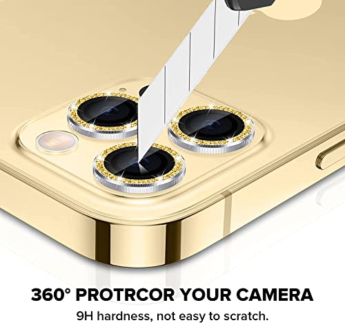 Keendex - Keendex KX 2665 Glass Screen Camera Lens Protector For Iphone 13 Pro with Glitter Design - Gold
