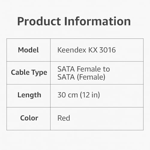 Keendex - Keendex KX 3016 SATA Data Cable, 30cm Red Female to Female, High-Speed SATA III 6Gbps Connector for HDD, SSD, CD/DVD Drives
