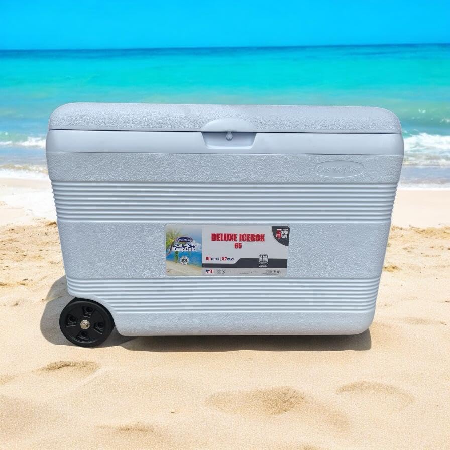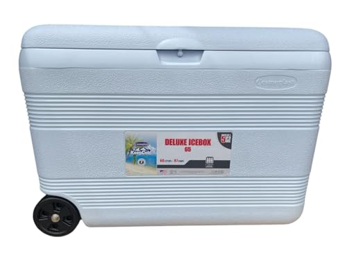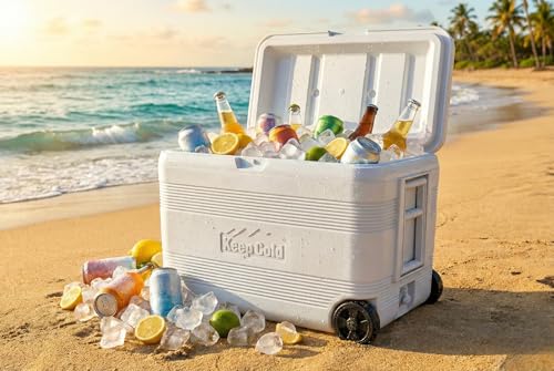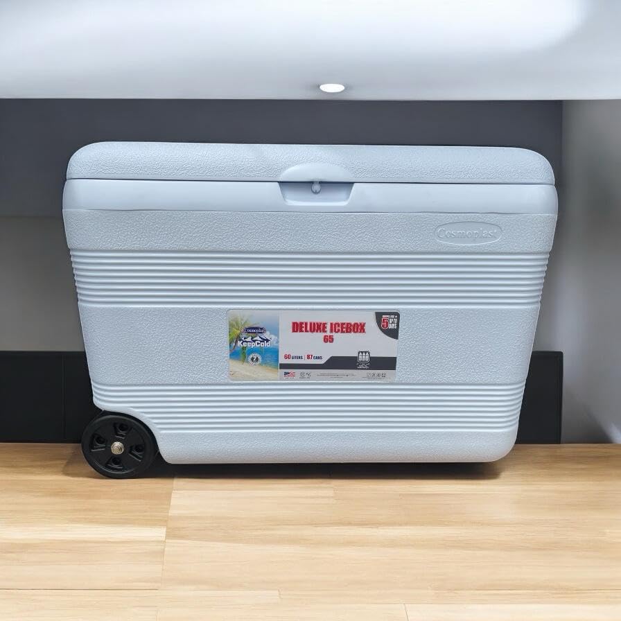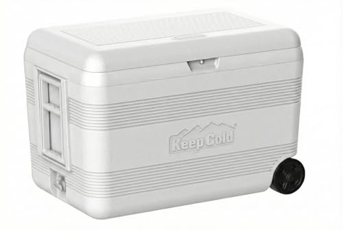 Keep Cold - صندوق ثلج محمول بعجلات من كيب كولد - صندوق ثلج فاخر G5، سعة 60 لتر (ابيض)