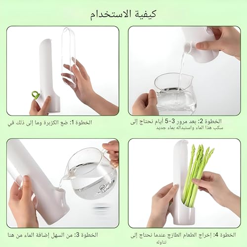 - 🌿 **SAVE FUNCTION**: This herbal storage container is designed with excellent safety and water resistant features, ensuring the herbs remain hydrated and fresh for up to 2-3 weeks. Effectively preserves the quality of your vegetables, allowing you to enjoy their flavors longer. Just remember to submerge the legs in the water to avoid over-soaking, which can lead to damage.