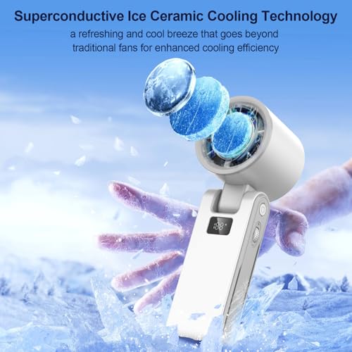 Kehuitry - مروحة يد محمولة قابلة للطي للنساء، مروحة توربو يدوية مزدوجة بـ 100 سرعة تدعم الهواء البارد، بطارية 3000 مللي أمبير قابلة لإعادة الشحن، مروحة تبريد شخصية للسفر مع حبل قصير من كيهويتري،، أبيض رمادي