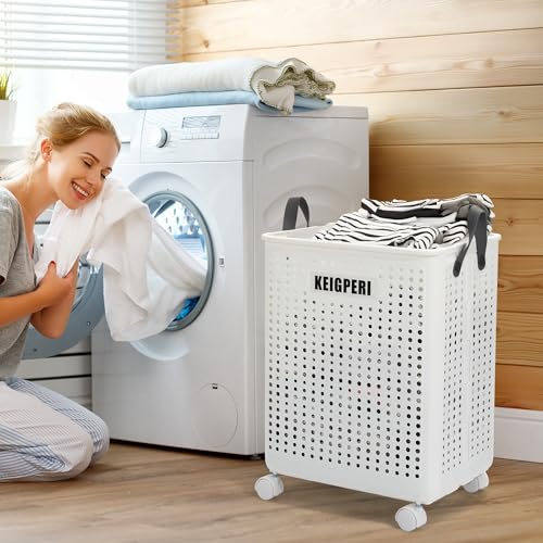 KEIGPERI - KEIGPERIcollapsible laundry baskets,laundry basket with wheels,foldable laundry basket,With wheels and handles, it is easy to move and can be folded to save space. (White, large)
