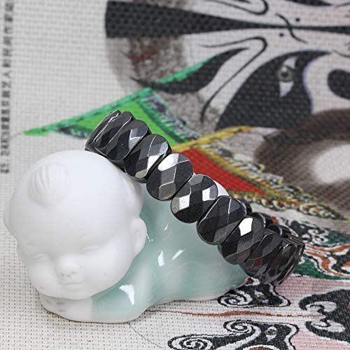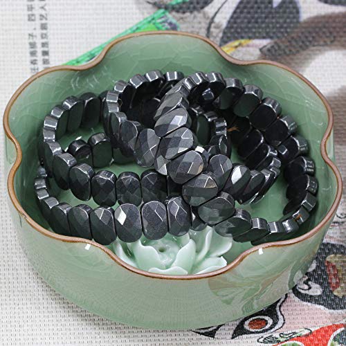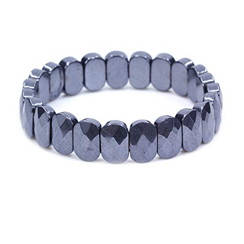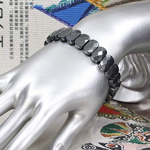Keleny - Keleny Gem Semi Precious Fashion Gemstones 14mm Faceted Oval Beads Crystal Elastic Bangle 7.5 Inch Unisex, 7.5 inch, Stone, hematite,