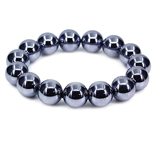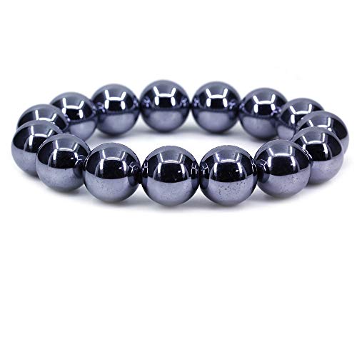 Keleny - Keleny Gem Semi Precious Gemstones 14mm Natural Stone Round Beads Crystal Stretch Bracelet 7 Inch Unisex, 7 inch, Stone, hematite,