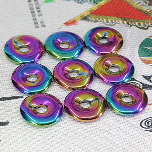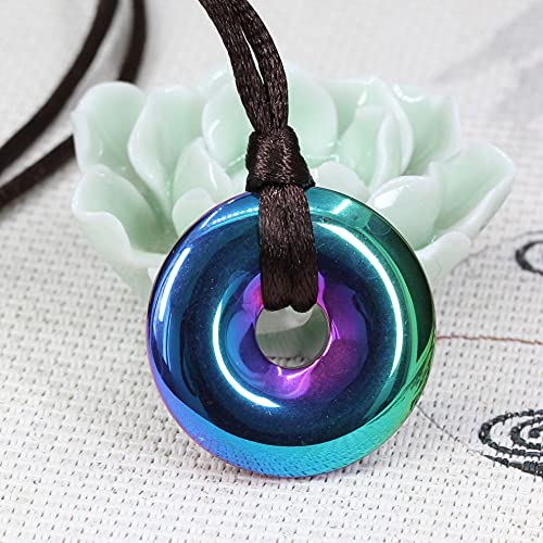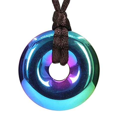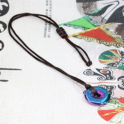 Keleny - كيليني عقد بقلادة على شكل عملة دائرية بطول 30 متر من احجار كريمة شبه ثمينة معدنية وخرز دونات قابل للتعديل 1.18 انش حجر هيماتايت للنساء للرجال