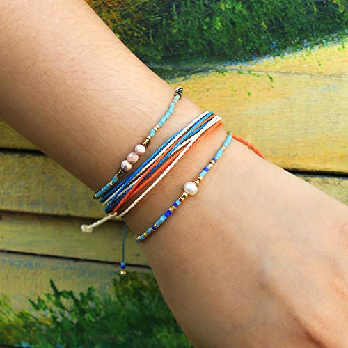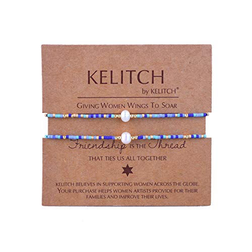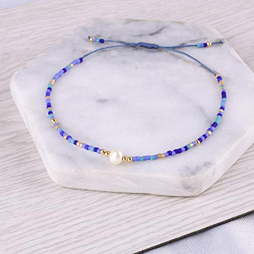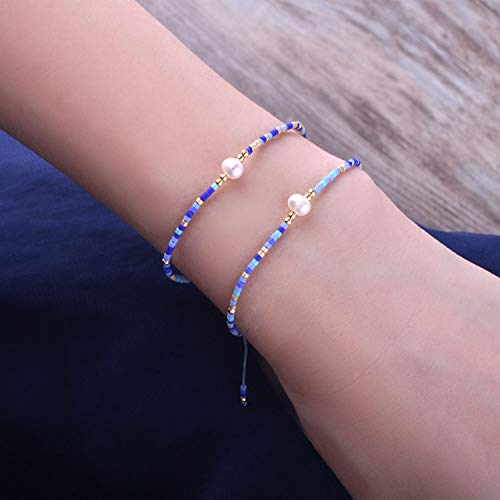 KELITCH - KELITCH 2 Pcs Pearl Friendship Bracelets Miyuki Beaded Woven Lovers Strand Bracelets Bangles Gifts, 10 inches, Shell