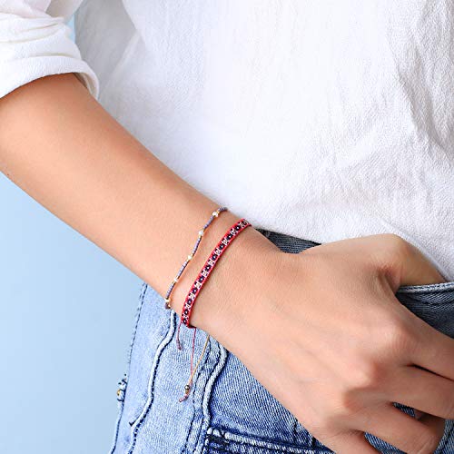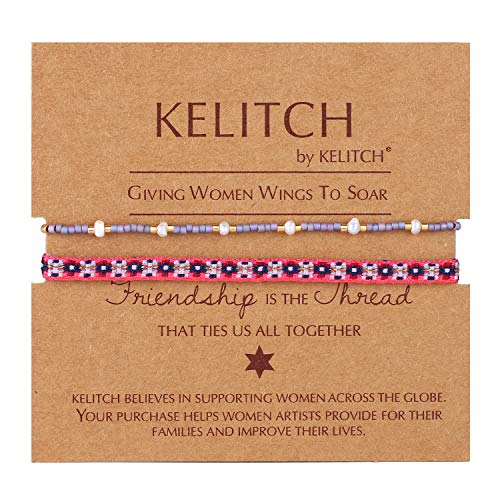 KELITCH - اساور الصداقة الملونة من الحبال الحريرية من كيليتش، 2 قطع اصدار 2021, 10 inch, حجر, خرز البذور