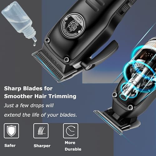 - تصميم أقوى وضجيج أقل. تعمل مجموعة ماكينة الحلاقة والتشذيب هذه بمحرك ملفوف من النحاس النقي، ويمكن أن تصل سرعة المحرك إلى 6500/6800 دورة في الدقيقة، مع رأس قاطع بدون فجوة على شكل حرف T، من السهل تقصير أطوال الشعر المختلفة. الضوضاء أقل من 65 ديسيبل عند التشغيل، مما يبقيك أنت وعائلتك بعيدًا عن الضوضاء ويوفر لك تجربة حلاقة أفضل.