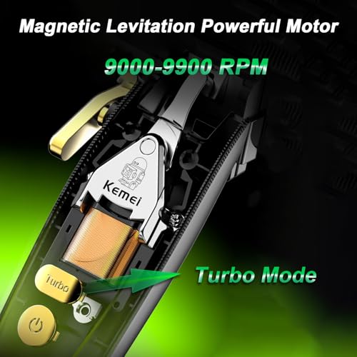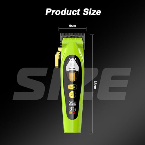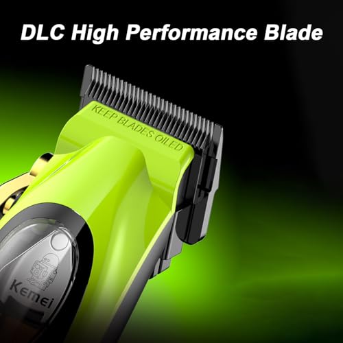 KEMEI - ماكينة تشذيب الشعر الاحترافية للرجال 2035 مزودة بشفرات دي ال سي تعمل لاسلكيًا مع رافعة وشاشة ال اي دي قابلة لإعادة الشحن عبر منفذ USB من كيمي