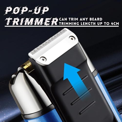 - 【Pop-Up Trimmer&2-In1 Shaver】: This 2-in-1 shaver expertly trims beards, sideburns, facial hair and hair. With the pop-up trimmer, it can trim beards up to 4 centimeters long, so you can trim any beard quickly and easily! If your beard is too long, we recommend trimming it with the trimmer first and then shaving with the foil shaver.