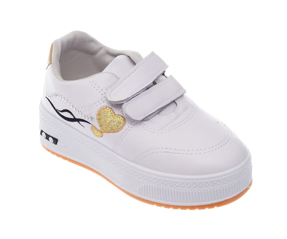 KEMT FASHION - Girls Sneakers Printed Heart Leather Velcro Closure