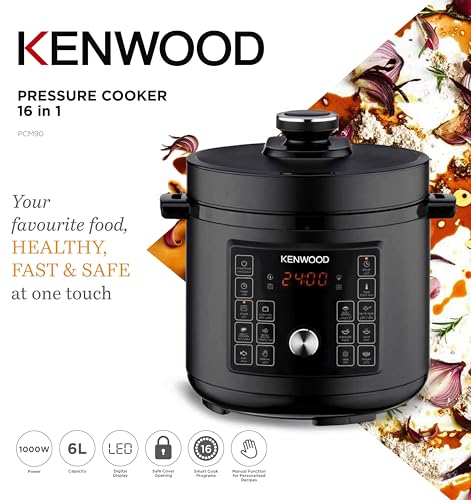 Kenwood - KENWOOD 16-In-1 Electric Pressure Cooker 6L 1000W Multifunctional Programmable Multicooker With Safety Feature, 16 Smart Cook Programs, Manual Function For Personalised Recipes PCM90.000BK Black