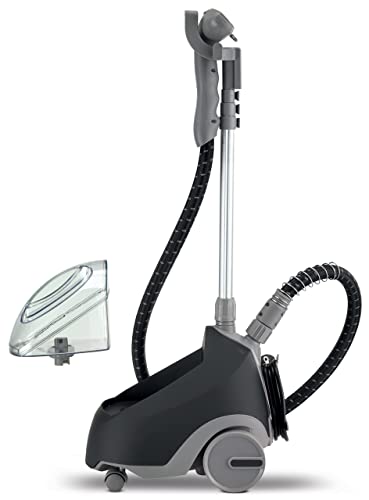 - كينوود مكواة بخار للملابس بقدرة 1500 واط مع خزان مياه سعة 2 لتر، عجلات دوارة، رف قابل للطي، ضاغط بنطلون، قفاز GSP65.500BK اسود - ضمان دولي