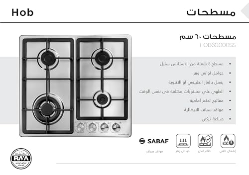 Kenwood - Kenwood HOB60.000SS Stainless Steel Built-in Gas Hob Stove, 60 cm Width